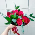 Букет красивый! Очень много зелени и розы - смотрится просто и классно. Свежайшие цветы, оригинально и интересно собрано все, я довольна очень! Спасибо!