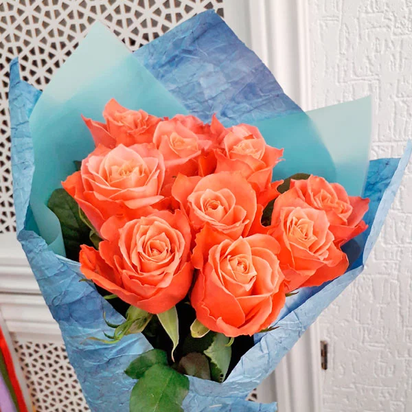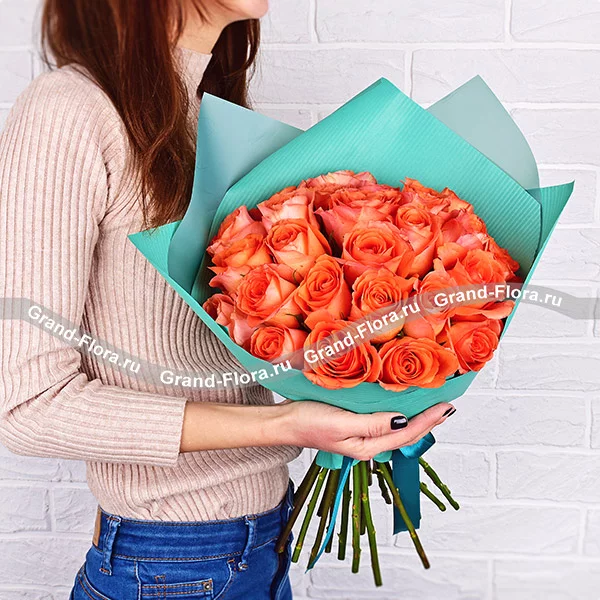 Внимание: сорт роз может отличаться от сорта на картинке, оттенок допустим от ярко-оранжевого (сорт Нина) до светло-оранжево-желтого